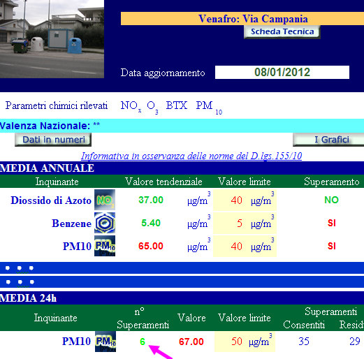 n° 6 gli sforamenti per la centralina di Venafro situata in Via Campania