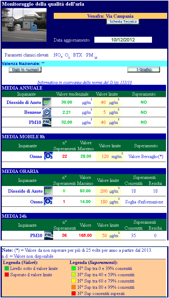 Una cosa è certa, che Venafro è la città più inquinata del Molise; più di Campobasso, più di Termoli e più di Isernia, non lo diciamo noi, ma ce lo dice l’ARPA Molise che mette sul suo sito www.arpamolise.it i rilevamenti fatti dalle centraline posizionate sul territorio Regionale.