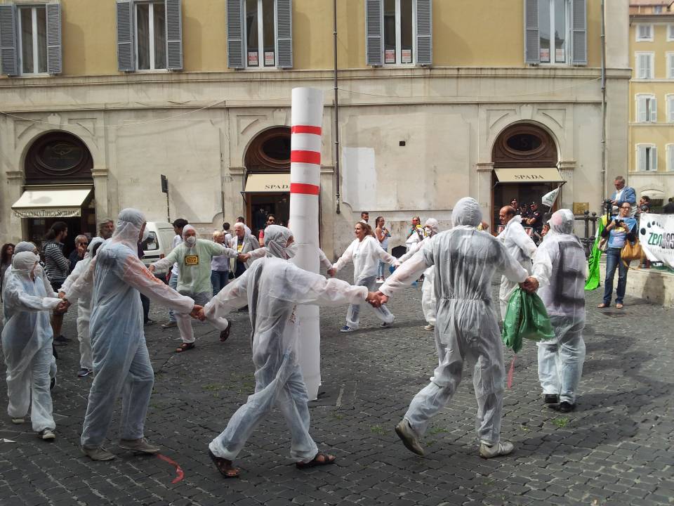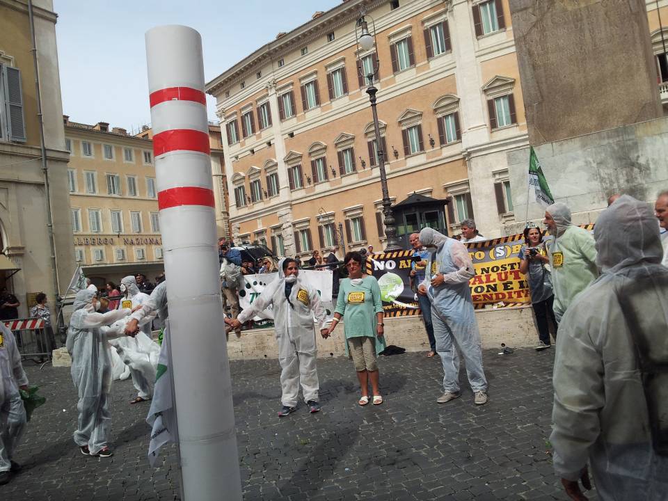 Ottimamente riuscito il PRESIDIO NAZIONALE con flash mob contro il decreto “Sblocca Italia” (che prevede l’ampliamento degli inceneritori esistenti e la costruzione di nuovi impianti) tenutosi ieri Mercoledi 9 settembre dalle 10 alle 14 a MONTECITORIO al quale ha preso parte anche la nostra Associazione “Mamme per la Salute e l’Ambiente Onlus” insieme a Zero Waste Lazio, Movimento Legge Rifiuti Zero di altre regioni ( Zero Waste Sardegna, Coord. GCR Liguria, Coord. Legge Rifiuti Zero Molise), Mo.V.I. nazionale, Cittadinanzattiva onlus, Slow Food Italia, Cetri/Tires, Isde Italia con la dottoressa Patrizia Gentilini ed il dottor Giovanni Ghirga, Medicina Democratica onlus, Cobas nazionale, Carteinregola, Diamocidafare, Comunità territoriale Mun 7, Coordinamento QRE, VivereVitinia, Retuvasa Colleferro, Comitato rifiuti zero Ladispoli, Comitato rifiuti zero Fiumicino, Comitato rifiuti zero lago Bracciano, Rete dei cittadini di Aprilia, ZeroWaste Grottaferrata, e comitati da Lombardia – Toscana – Marche – Puglia. Pino di Attivamontesacro e Lori Tuzii che hanno organizzato la squadra dei dodici per comporre la frase NO INCENERITORI nel FLASH MOB.
