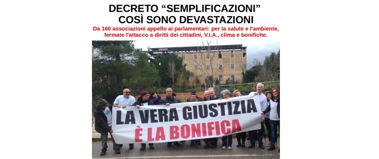 “Il DL Semplificazioni contiene norme che ritardano o addirittura annullano le bonifiche dei siti inquinati, dimezzano i tempi già oggi molto risicati per la partecipazione dei cittadini nelle procedure di Valutazione di Impatto Ambientale, favoriscono le opere “fossili” in piena emergenza climatica, moltiplicano le poltrone con l’istituzione di una seconda commissione VIA nazionale”: 160 associazioni e comitati di livello nazionale,