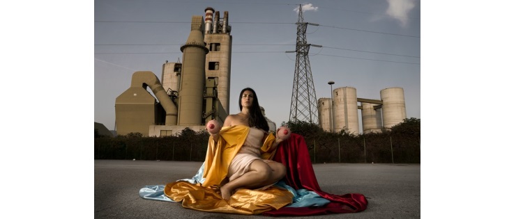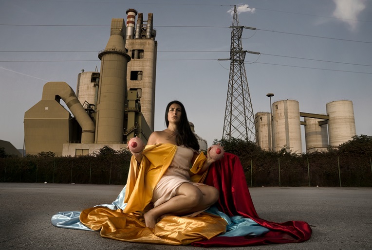 Sant’Agata da “Martyrion”, progetto performativo di Teresa Antignani, foto di Sara Terracciano (Immagine raffigurante Sant’Agata martire a cui vennero strappati i seni: la violenza sull’ambiente spesso si manifesta sul corpo della donna martirizzandola).