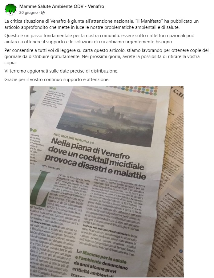 Attenzione nazionale per la situazione di Venafro Giugno 20, 2024 MSAO (admin) Altro La situazione di Venafro è giunta all’attenzione nazionale. “Il Manifesto” ha pubblicato un’importante articolo: