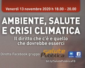 Venerdì 13 novembre seguite questo interessante dibattito sul tema ‘Ambiente, salute e crisi climatica’. A partire dalle ore 18.00 sulla pagina FB di #SalutePubblica: https://www.facebook.com/groups/228429837235650